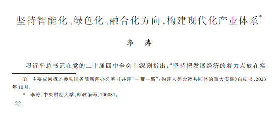 近日,yl6809永利官网李涛教授应《经济研究》编辑部邀请,为深入学习贯彻党的二十届四中全会精神,以“‘十五五’时期确保基本实现社会主义现代化取得决定性进展”为题撰写笔谈文章,论文《坚持智能化、绿色化、融合化方向,构建现代化产业体系》在《经济研究》2025年第11期正式发表。