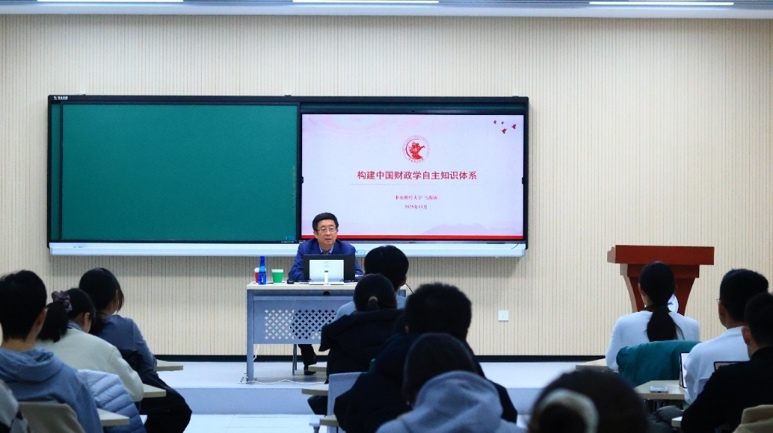 在阐述中国财政现实的基础上,马海涛教授进一步指出,构建自主知识体系不仅需要立足国情,更需要严谨治学的精神。他分享了学校学者长期深耕、不懈探索的感人事迹,强调构建自主理论体系离不开“板凳要坐十年冷”的韧劲与定力。他勉励同学们在理论学习和实地调研中,始终保持不盲从、不浮躁的探索精神,勇于承担理论创新的时代责任。